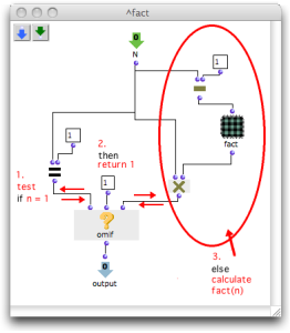 The resulting patch means : if n = 1, then fact(n) = 1 else, fact(n) = n x fact(n-1)
