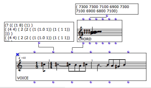The combination of inputs programming and score edition allows a complete musical edition of the object. |