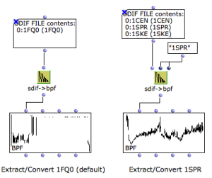 Some SDIF descriptions consist of a single scalar parameter, which can easily be extracted and converted to a BPF object. This is typically the case of the fundamental frequency analyses.