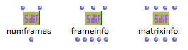 • FRAMEINFO : information about frame number n (of a specific type or in total) : type signature, stream ID, time, position, number of matrices inside.