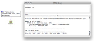 SDIFSTREAM is part of the classes provided in OM to represent and manipulate SDIF data. SDIFFRAMES and SDIFMATRICES can extracted from and SDIFSTREAM and manipulated as well in OM visual programs. Some tools are also provided to write a new SDIF file using these SDIF structures.