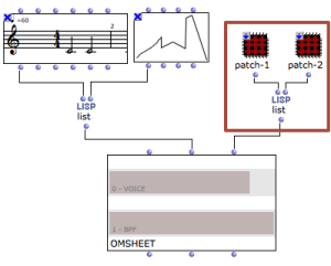 The other input of the OMSheet box (<patch-list>) allows you to programmatically set the patches used internally in the sheet.
