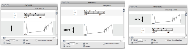 SHIFT + Up and Down arrow keys to change the position or spacing of selected track(s)ALT + Up and Down arrow keys switch up/down the selected track(s)All the objects and internal events in the sheet are precisely positioned in the time axis according to non-linear notation or other graphical constraints.