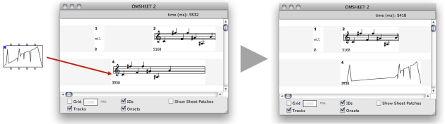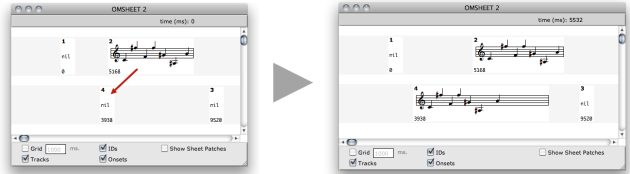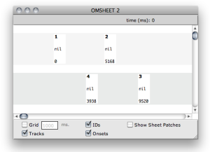 The Show Sheet Patches box allows to display ofr hide the patches, that is, the "algorithmic" part of the sheet. We will not consider it in this section and focus on the "score" part only.
