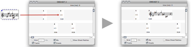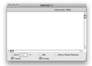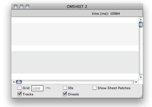 A new OMSheet editor is initially a blank page : there is nothing inside. A first step is therefore to add tracks and objects in this page. This can be done beforehand at building the Sheet object in the patch, or directly in the editor. |