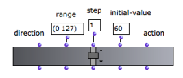 ![]() | The "action" input must be connected to a function or a box on "lambda" mode with one input or argument. When the slider is moved, this function is called with the value of the "value" input as argument. To set or modify the function associated with the slider :