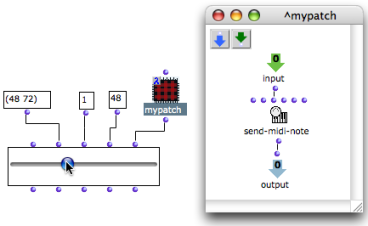 The patch on "lambda" mode is a very simple program that applies the slider's value to the pitch input of the send-midi-note function.