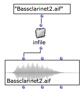 A SOUND box is basically initialized with a sound file pathname, which can be connected to its first input.