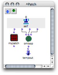 You can now manipulate the data returned by the Maquette Self Input with the program you will design in the synthesis patch. The maquette's value will be that of the object connected to the Tempout of the synthesis patch .