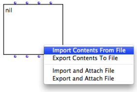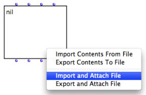 • To fill textfile with the contents of a persistent file, Ctrl / right click on the box, select Import and Attach File .