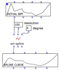 The om-spline function generates spline curves starting from the points of a BPF or BPC.