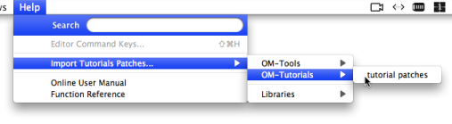 The tutorial patch correspond to the marerial formerly contained in the "Ircam workspaces" installed with OM :