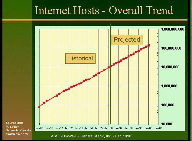胶片10:1989-1996年InterNet上主机数和2000年预计达到的数目
