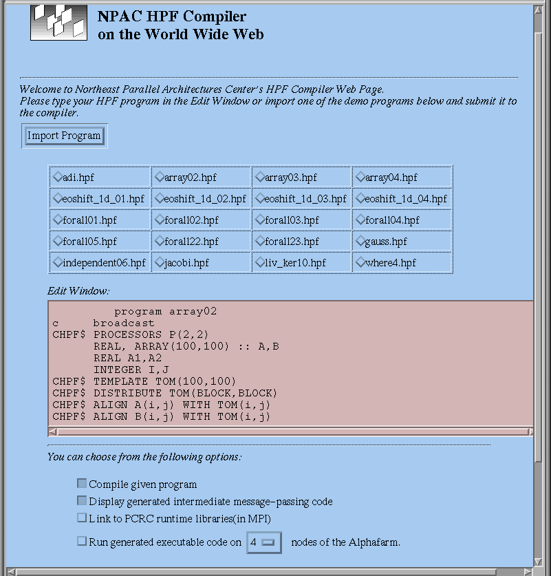 胶片189:Web上Syracuse的HPF编译器 -- 输入页