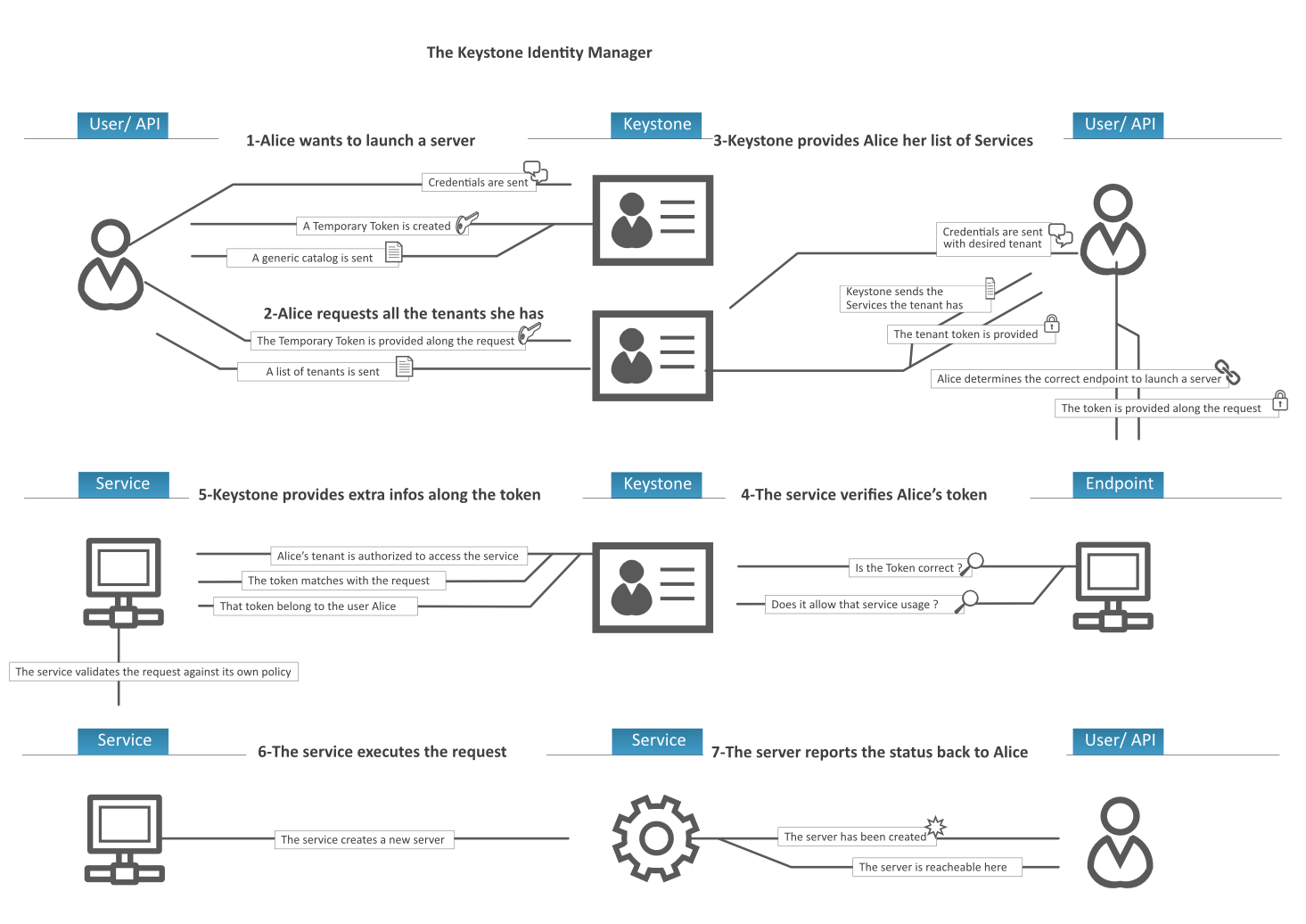 These credentials are initially a user name and password or a user name and API key. In response to these credentials, the Identity Service issues an authentication token to the user, which the user provides in subsequent requests.