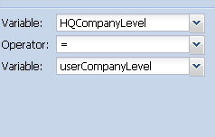 Take "HQ Users" user category for example, which means user's companyLevel value must be integer 1. We create two variables: