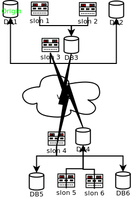 DB3 resides in a "DMZ" at the same site; it is intended to be used as a Slony-I "provider" for remote locations.