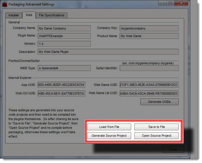 Select the Configure button next to the Web Target Format label to open the Packaging Advanced Setting dialog to the web tab.